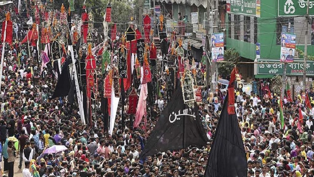 আশুরা উপলক্ষে ঢাকার সব চেয়ে বড় মিছিলটি পুরান ঢাকার হোসেনি দালান থেকে শুরু হয়। মিছিলটি লালবাগ-আজিমপুর-নিউ মার্কেট-নীলক্ষেত-সায়েন্স ল্যাবরেটরি হয়ে ধানমন্ডি লেকের পাড়ে প্রতীকী ‘কারবালা’ প্রান্তে গিয়ে শেষ হবে। তাজিয়া মিছিলকে ঘিরে নিরাপত্তা ব্যবস্থা জোরদার করেছে আইনশৃঙ্খলা রক্ষাকারী বাহিনী।